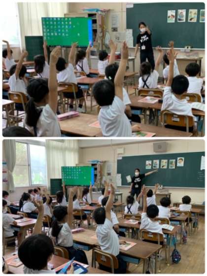 1年生 道徳 公開日 2020/07/17 更新日 2020/07/17 お知らせ 1年生の1時間目は道徳です。イラストを使って、ゆうたくんの行動を、みんなで振り返ってみました。 イラストを見て、「これ、いいの?」「これは、どう?」という先生の質問に、1年生のみんなは、たくさんのことに気づいたようです。いっぱい手が上がって、積極的に発言していました。また、お友だちの発言に対して、ハンドサインで同意を示してくれています。 いいね(0)