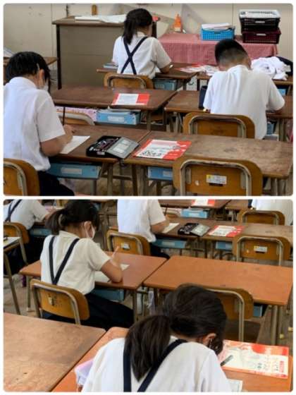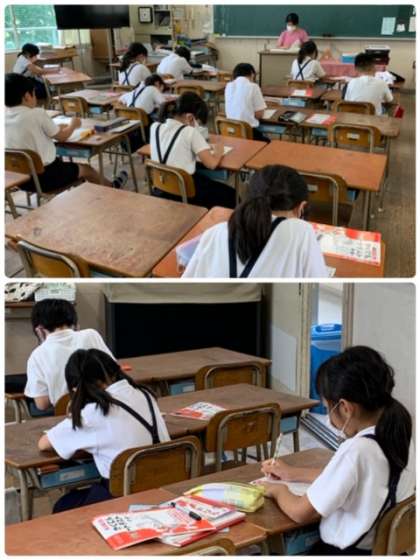 3年生の国語の時間の様子です。授業の初めに、「かくにんショートテスト」を実施しています。