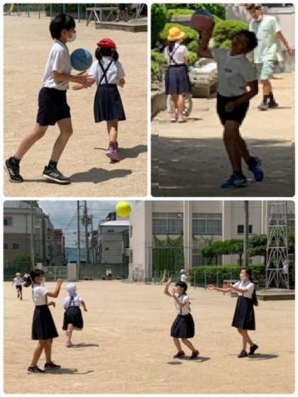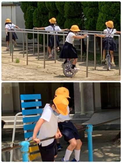青空の元、元気よく遊んでいます。