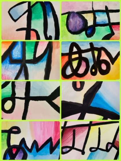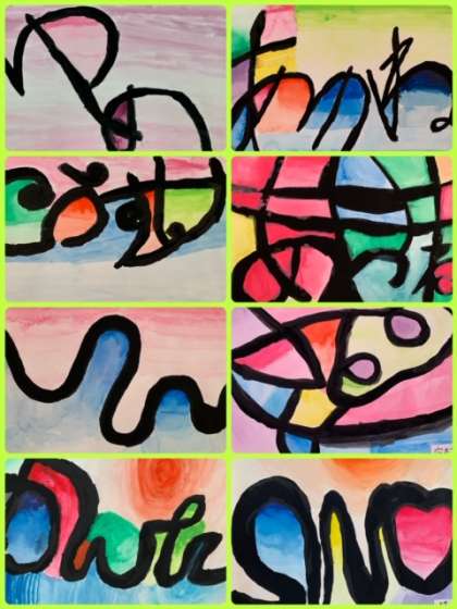 5年生の図工作品です。文字を使ってデザインしています。