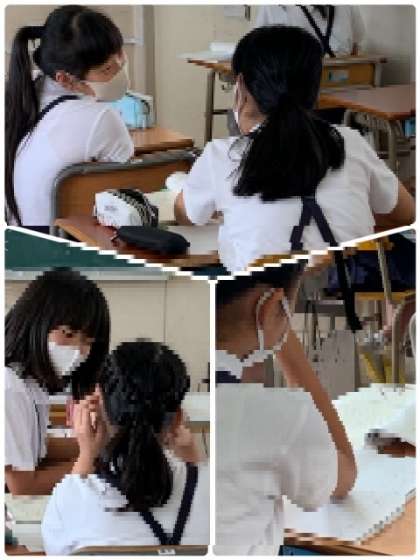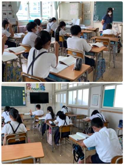 まずは、「クルルが飛べるようになったわけ」について考えています。一人でじっくり考えている児童、友だちと相談している児童、それぞれのスタイルで考えています。