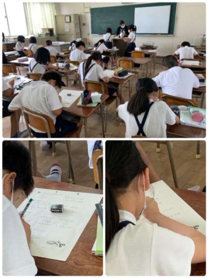 4年生 算数 公開日 2020/07/28 更新日 2020/07/28 お知らせ 4年生では、学級を2分割して算数と社会を学習しました。算数の授業の様子です。ふりかえりプリントをしています。 いいね(0)