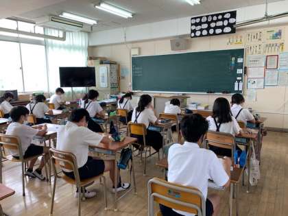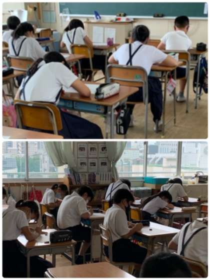 6年生の国語の時間の様子です。1・2組ともに、単元テストを実施しています。