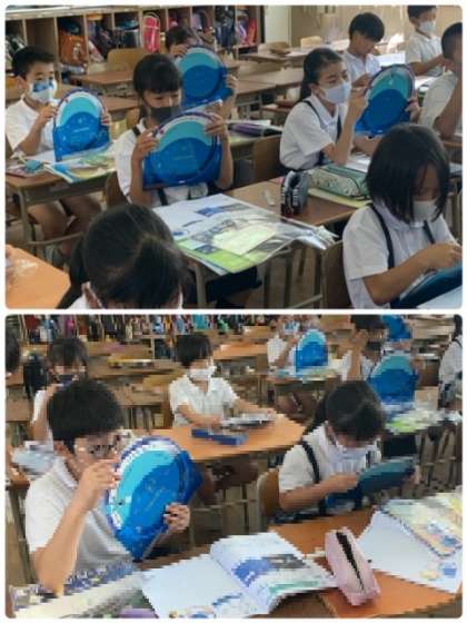 4年生の理科の時間の様子です。星座早見表の見方を学習しました。