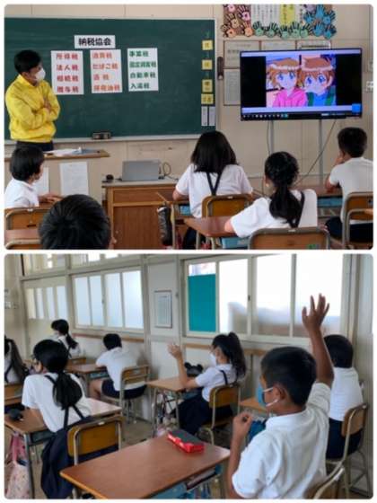 動画を見た後は、講師の方よりお話をしていただきました。今日の「租税教室」によって、税金が様々な形で、わたしたちの生活を支えてくれていることを学習しました。