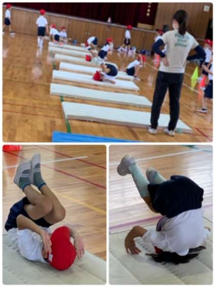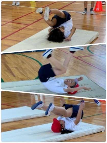 1年生 体育 公開日 2020/08/04 更新日 2020/08/04 お知らせ 1年生の体育の授業の様子です。「マット運動」に取り組んでいます。「前転」と「後転」の練習をしています。 授業の様子を見に行くと「見て!見て!」と言いながら、前転や後転をしてみせてくれました。上手にできたときの、にっこり笑顔が印象的でした。 いいね(0)