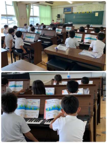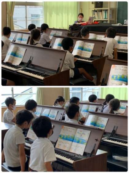 2年生 音楽 公開日 2020/08/05 更新日 2020/08/05 お知らせ 2年2組の音楽の授業の様子です。オルガンの練習をしています。「かえるの がっこう」が演奏できるように、まずは「ドレミファ ミレド・・・」と声に出して確認していました。 いいね(0)