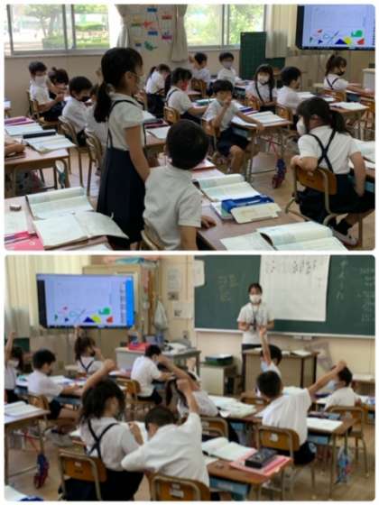 1年生 国語 公開日 2020/08/06 更新日 2020/08/06 お知らせ 1年生の国語の授業の様子です。単元「かぞえうた」の学習をしています。「ぞうは、いっぴき」「いえは、2けん」「ひとは、3にん」・・・というように、それぞれ、どのような数え方をするのか学習していました。 いいね(0)