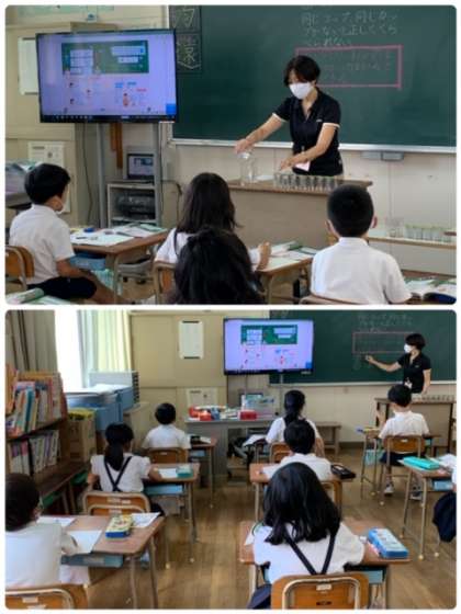 2年生 算数 公開日 2020/08/27 更新日 2020/08/27 お知らせ 2年1組の算数の授業の様子です。今日のめあては、「水のかさのあらわし方を考えよう」です。1dLのコップ10杯分を、実際に1Lの容器に入れ替えてみました。 いいね(0)