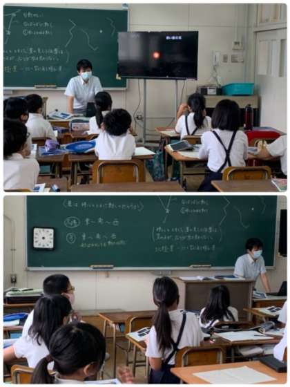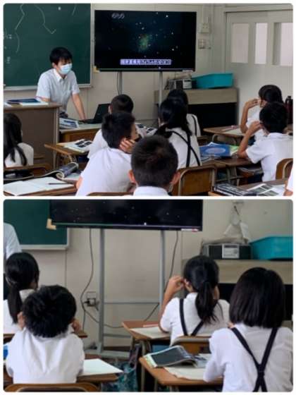 4年生は、1学級を2分割して理科と算数を実施しています。今日の理科の授業の様子です。今日の課題は「星は時こくとともに動くのだろうか」です。学習の最後に、NHK FOR SCHOOL の動画を見ていました。とても興味深い様子で見ています。