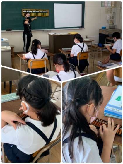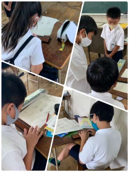 簡単なたし算の仕方も学習しました。習い事でそろばんを経験している児童が、ミニ先生役をして、周りのお友だちに教えてくれたり、正しいかどうかをみてくれていました。
