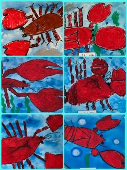 どの作品も、ザリガニの特徴をよくとらえて描いていますね。