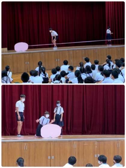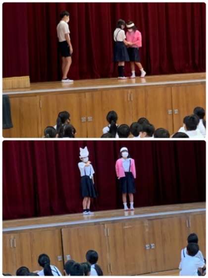 児童集会 公開日 2020/09/04 更新日 2020/09/04 お知らせ 9月4日(金)、児童集会を行いました。今日は、集会委員による「桃太郎クイズ」でした。みんながよく知っている物語「桃太郎」の劇をして、本物と違うところを見つめるクイズをしてくれました。 いいね(0)