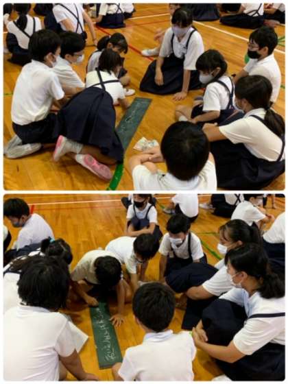 正解を見付けたら、班長が小黒板に記入してくれます。