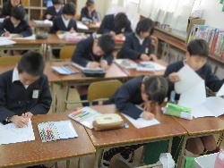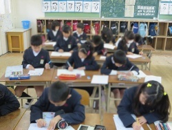 12月19日金曜日、3年1組の児童が、創作文に取り組んでいました。自分で考えたストーリーを文章にまとめることは難しく、頭を悩ませている児童もいました。