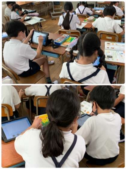 3年生の理科の授業の様子です。今日は、タブレットを活用して学習を進めています。