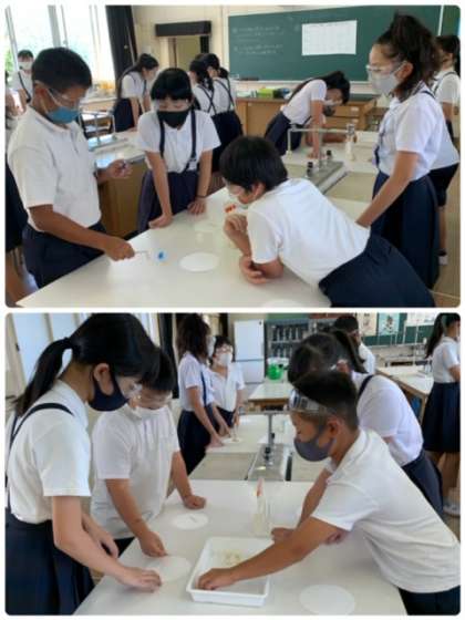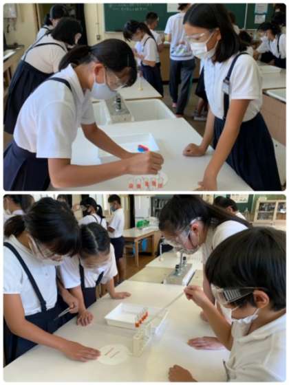 6年1組の理科の授業の様子です。今日は理科室での学習です。