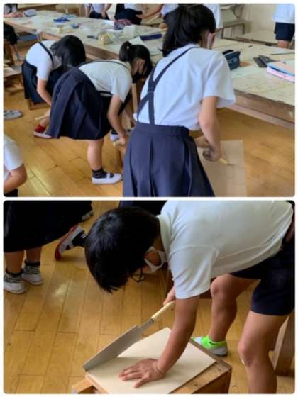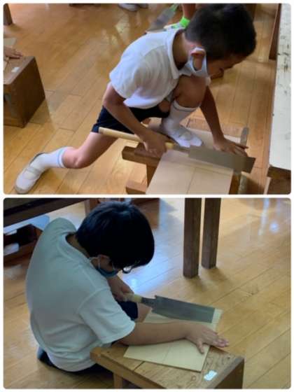4年生 図工 公開日 2020/09/10 更新日 2020/09/10 お知らせ のこぎりを使って、切っていきます。のこぎりを使うのは、初めてのこと・・・先生から扱い方を聞いて、チャンレンジしています。もちろん、けがのないように、慎重に・・・。 いいね(0)