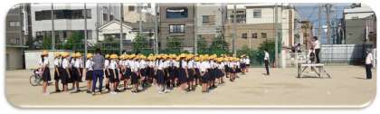 今日の児童朝会も先週に引き続いて運動場で行いました。今朝の大阪市の最低気温は21.7度(気象庁発表 大阪市中央区)だったそうで、過ごしやすくなってきました。