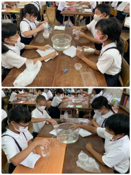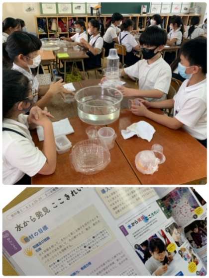 授業のはじまりの様子を見ると、児童たちは、持ってきた容器でどんなことができるか、楽しみにしている様子が感じられました。