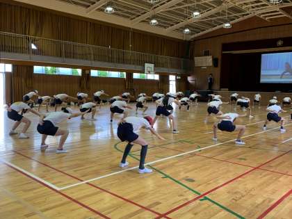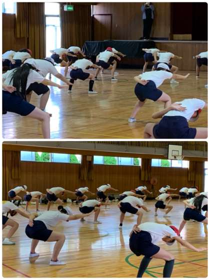 運動会に向けて、集団演技「南中ソーラン」の練習を、6年生1・2組合同で行いました。