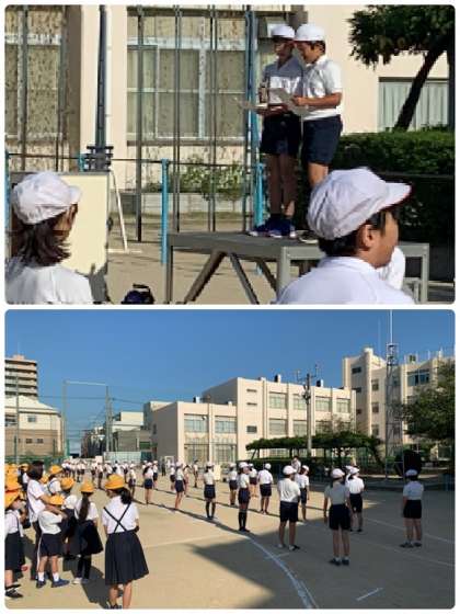 10月2日(金)、今日の児童集会は、予定していた内容を変更して実施しました。運動会で取り組む「集団演技 ソーラン節」について、6年生から全校児童に向けて、メッセージと模範演技を贈りました。
