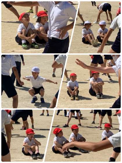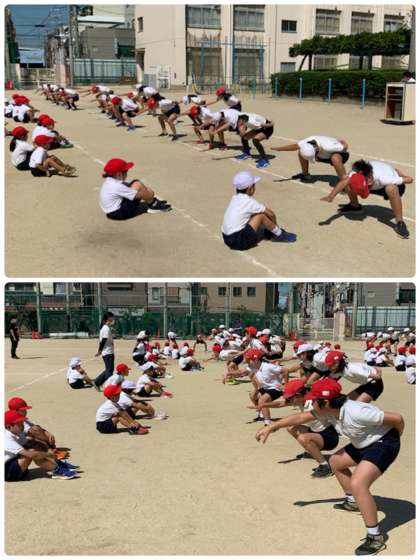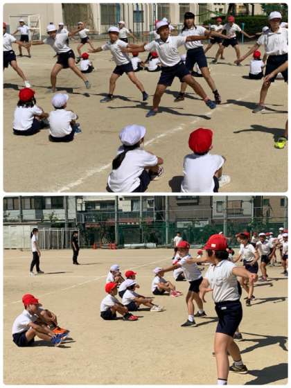 「みなさん、4つの動きはわかりました。わからないところがあれば、私たちが教えるので、なんでも聞いてください。今から、もう一度、6年生が踊ります。4つの動きが出てくるので、ぜひ探してみてください。」