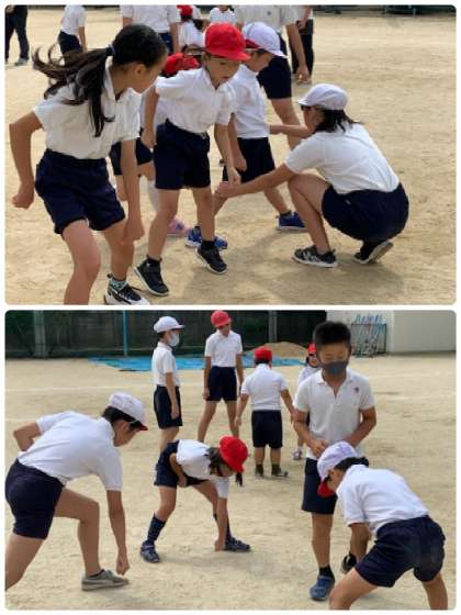 縦割り班に分かれて教えてくれています。
