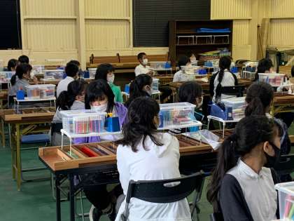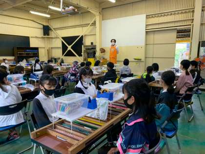 吹き戻しの里に到達しました。今から説明を聞いて、実際に作っていきます。