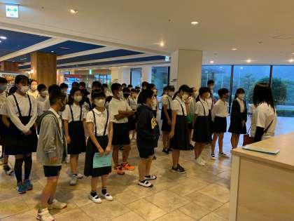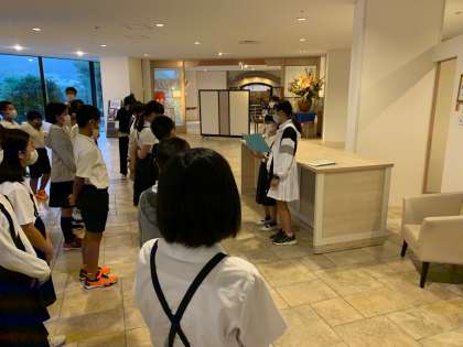朝のつどいをしています。朝の検温をしましたが、全員、元気です。