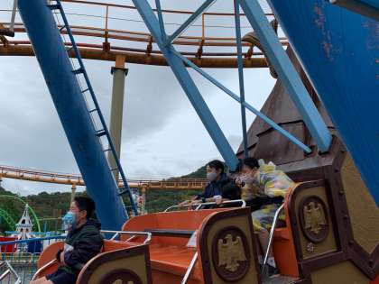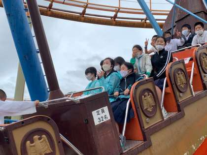 班行動を始めたら、ピタッと雨が上がりました。みんな、楽しんでいます。