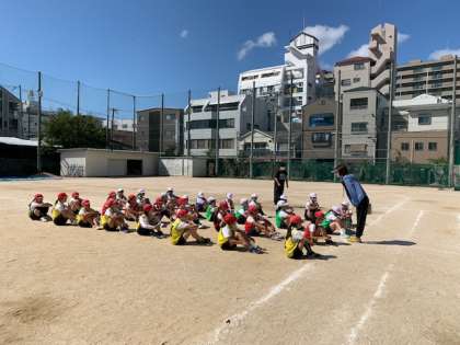 5年生の体育の授業の様子です。運動会に向けて、リレーの練習をしています。