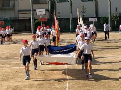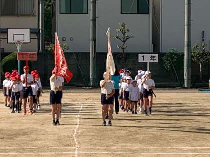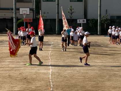 運動会全体練習 公開日 2020/10/16 更新日 2020/10/16 お知らせ 運動会全体練習の3回目です。まずは、入場の練習をしました。今年は、例年とは異なり、児童席前から入場する形をとります。 まずは、国旗・校章旗が先頭を務めます。続いて、優勝旗・準優勝盾が続きます。 いいね(0)