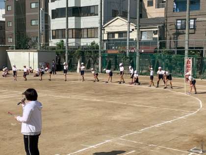 プログラム2番「応援合戦」についても練習しました。応援団が、太鼓の合図で入場します。