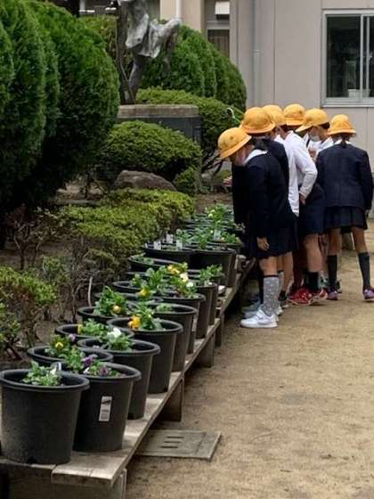 グループ一鉢活動 公開日 2020/10/19 更新日 2020/10/19 お知らせ 3・4年生もグループで1つずつ鉢植えをしました。今日も、朝から自分たちの鉢植えを眺めたり、水やりをしていました。元気に育ちますように・・・。 いいね(0)