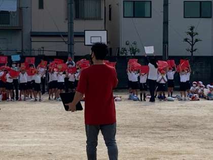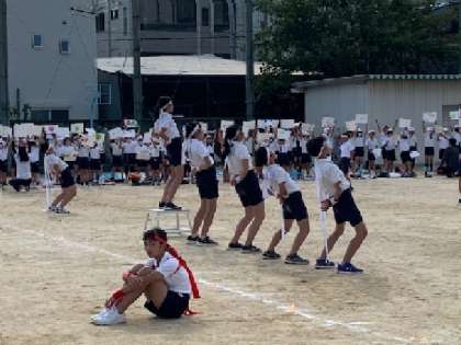運動会全体練習 公開日 2020/10/21 更新日 2020/10/21 お知らせ 応援合戦では、みんなが運動会への思いを込めてメッセージや絵を描いた「赤白の画用紙」を使うタイミングも練習しました。 いいね(0)