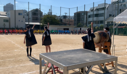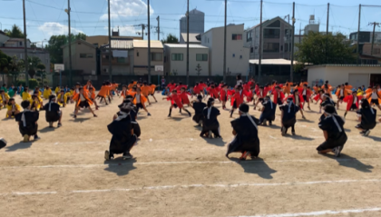 全体演技「九条北ソーラン2020」も、全校児童が法被を着て踊りました。