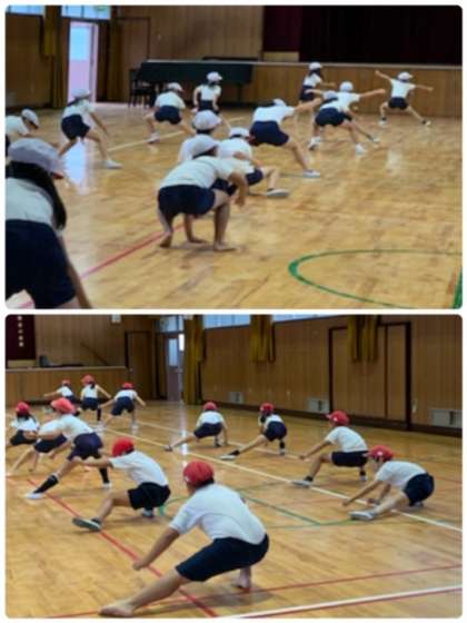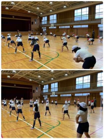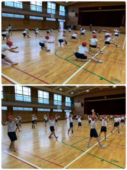3年生の体育の授業の様子です。明日の運動会に向けて、動きの最終確認をしていました。開閉会式の流れを振り返った後、「ソーランを踊るよ。」という先生の言葉に、とてもうれしそうな表情をしていました。明日の運動会本番、3年生のパワー全開で盛り上げてくださいね!!