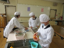 1月21日水曜日、6年生が家庭科の時間に、野菜のベーコンまきを調理しました。各班手際よくすすめていました。