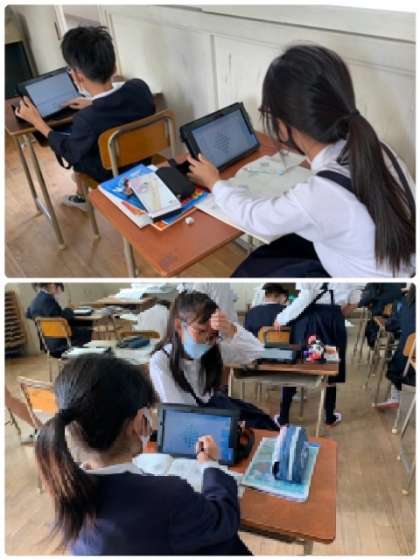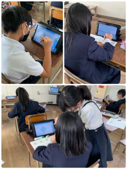 4年生の算数の授業の様子です。今日の学習のめあては、「図を使って式を表そう」です。例えば、「4×4+3×3」のような計算式を、図を丸で囲んで表していました。これによって、かけ算やたし算がまじった計算の理解が深まりますね。