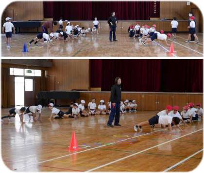 体育授業インストラクター派遣事業 公開日 2020/11/11 更新日 2020/11/11 事務室より 11月11日(水) 西区の体育授業へのインストラクター派遣で、お2人の指導者に来ていただきました。今日は、2年生と3年生が指導を受けました。 2年生も3年生も今日の予定は、ストレッチ・体幹トレーニングです。それぞれ楽しそうに指導を受けて、体を動かしていました。 いいね(0)