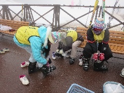 1月27日火曜日、6年生が卒業遠足で六甲山へ行き、スキーの体験をしました。到着すると、すごい霧が出ていて前も見にくい状態でしたが、練習していると時折、晴れ間が出るほど回復しました。しかし、途中で小雨が降ったりやんだり、また晴れたりと、不安定な天候でした。