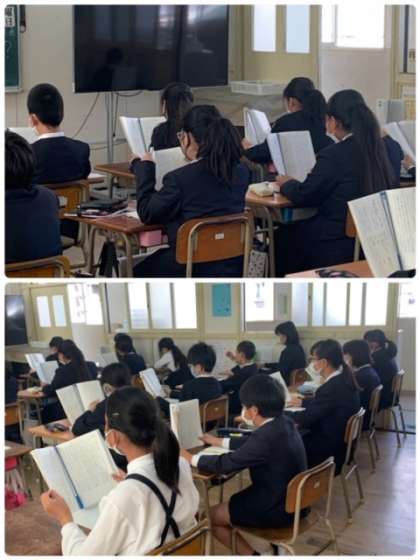 5年生 国語 公開日 2020/11/17 更新日 2020/11/17 お知らせ 5年生の国語の授業の様子です。単元「和の文化を受けつぐ」の学習を進めています。音読から授業が始まりました。とてもよい姿勢で、音読をしています。 いいね(0)