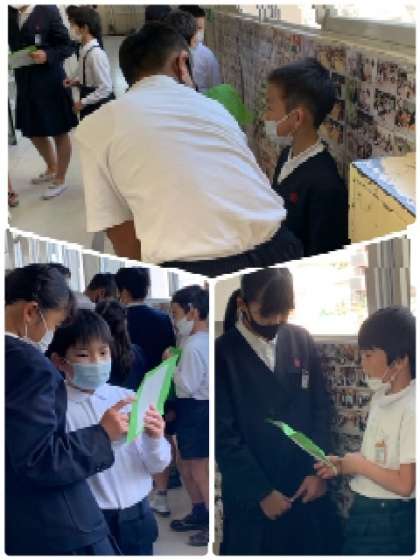 休み時間 公開日 2020/11/18 更新日 2020/11/18 お知らせ 休み時間の様子です。2年生が、6年生の教室前に来ました。縦割り班で一緒に活動している6年生のお兄さん・お姉さんを見つけて、「九九」を聞いてもらっています。がんばって練習して、「九九マスター」になろうね。 いいね(0)