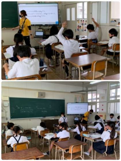 3年生の算数の授業の様子です。前回までの授業で、重さの単位「kg」を教えてもらいました。今日は、問題「たいちさんの体重は32kgです。赤ちゃんをだいてはかると、37kgになりました。赤ちゃんの体重は何kgですか。」に取り組んでいます。