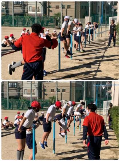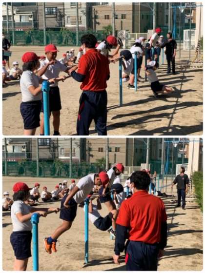続いて、前回りに挑戦しています。うまく回れるコツを教えてもらいました。