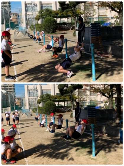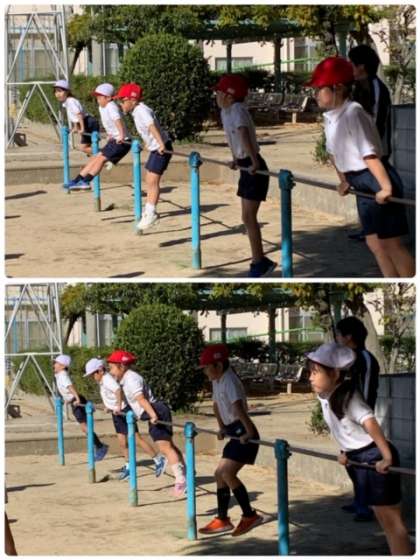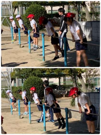 1年生 体育 公開日 2020/11/24 更新日 2020/11/24 お知らせ 1年生の体育の授業の様子です。鉄棒を使った運動をしています。前にインスタラクターの方に教えてもらったことを思い出しながら、がんばっています。 いいね(0)