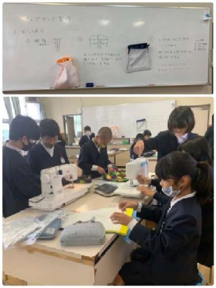 出し入れ口の部分の作業に入ったようです。しつけぬいをしてから、ミシンで縫っていきます。完成間近かですね。