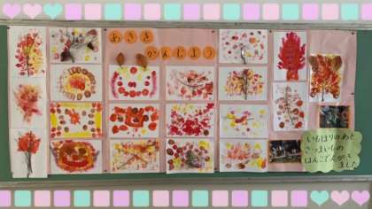 ポプラ学級作品〜あきを かんじよう 公開日 2020/11/25 更新日 2020/11/25 お知らせ ポプラ学級では、プランターでさつまいもを育てました。そのみんなで育てたさつまいもを収穫し、そのさつまいもを使って「さつまいも はんこ」の作品を作りました。題して「あきを かんじよう」です。中庭で拾ったはっぱや小枝も添えて、工夫もしています。1階の掲示板に飾っています。 いいね(0)