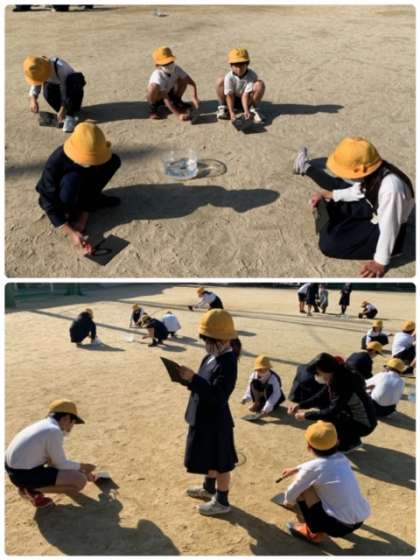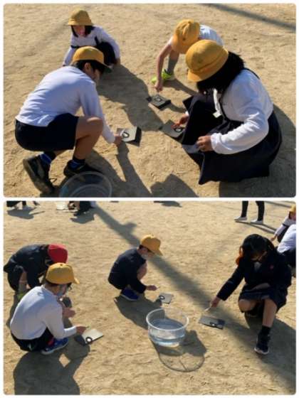 3年生の理科の授業の様子です。今、「太陽と光」について学習しています。先日から実験をする予定を、3年生はとても楽しみにしていました。最初に予定していた日は、雨のため中止になったため、一層、実験の日が待ち遠しかったようです。今日は、朝から好天に恵まれたので、実験に臨むことができました。